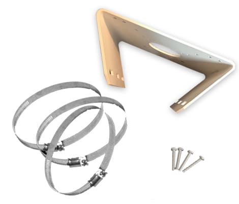 The DuoTherm Security Camera Mount is specifically designed to mount our DuoTherm Thermal Bullet Camera to a pole. This security camera mounting kit comes with the mounting bracket, screws and three stainless steel worm-gear bands allowing you the ability to mount your DuoTherm to 2.5″ to 5″ poles.